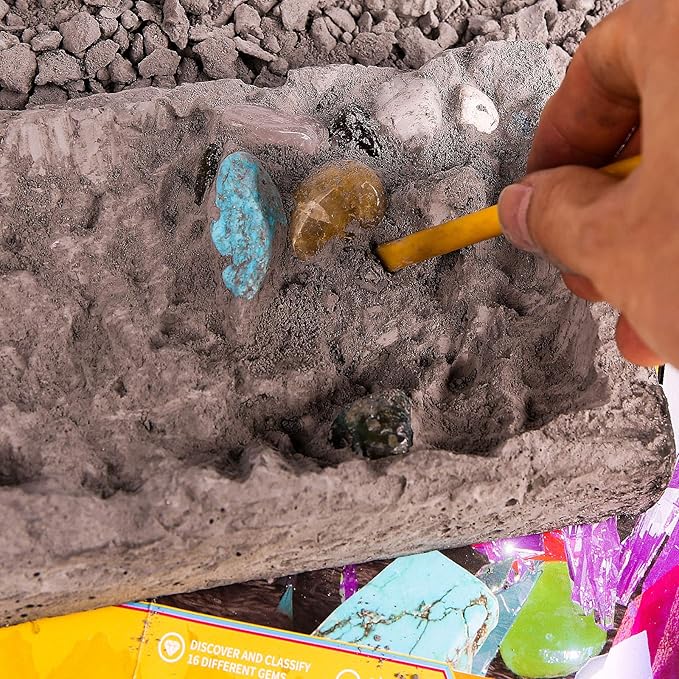 - A Fun and Educational STEM Toys for boys. As exciting as it is educational, our mining excavation kit encourages your child to learn about gemstones and the science of geology in a fun, hands on way. Dig and discover 16 different gems, match the gems you find with the included classification guide to learn more about these precious stones!
