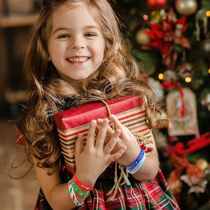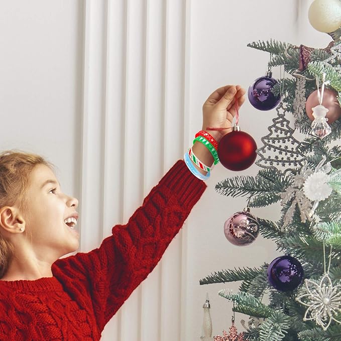 Whaline 54pcs Christmas Silicone Bracelet Xmas Rubber Band Wristband Merry Christmas Wristband, Accessories Gift for Holiday Decoration Wrist Band Party Supplies