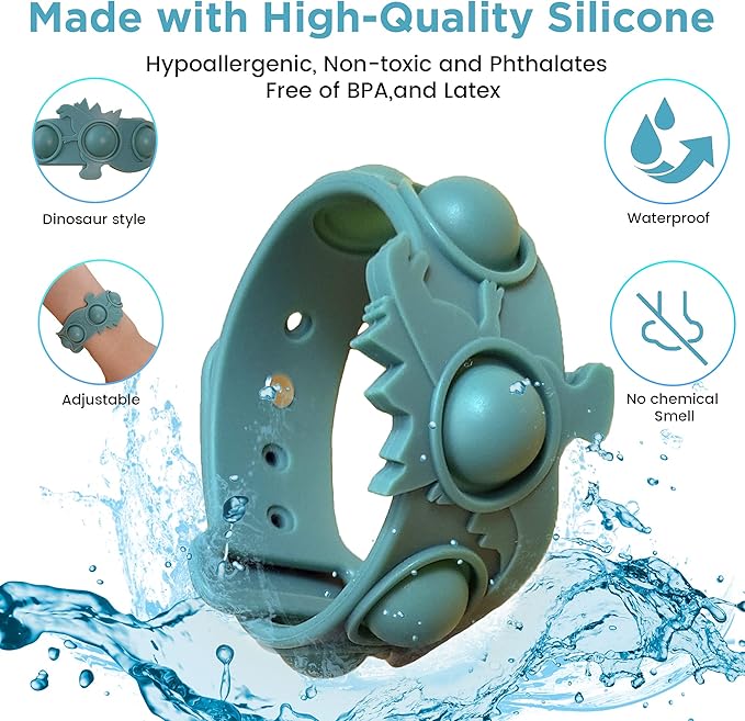 - 【🦖 2PCS INCLUDED!】the set of pop dinosaur fidget bracelets are in beautiful colors! 1 x GREEN and 1 x GREY!