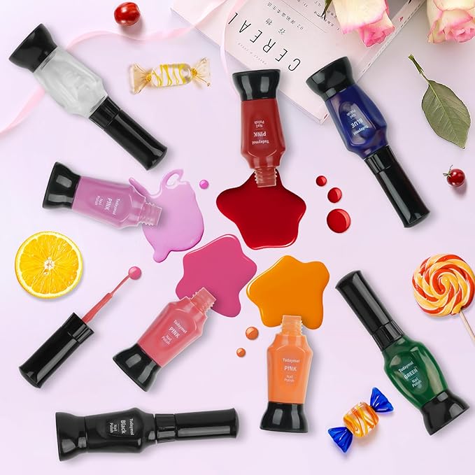 - Quick Dry & Easy Peel-Off Nail Polish: Girls only need to wait 1-2 minutes after painting nails, which will dry quickly, reducing the waiting time and not staining the clothes.When you want to change the style of your nails, just soak in water for a while to peel off the nail polish