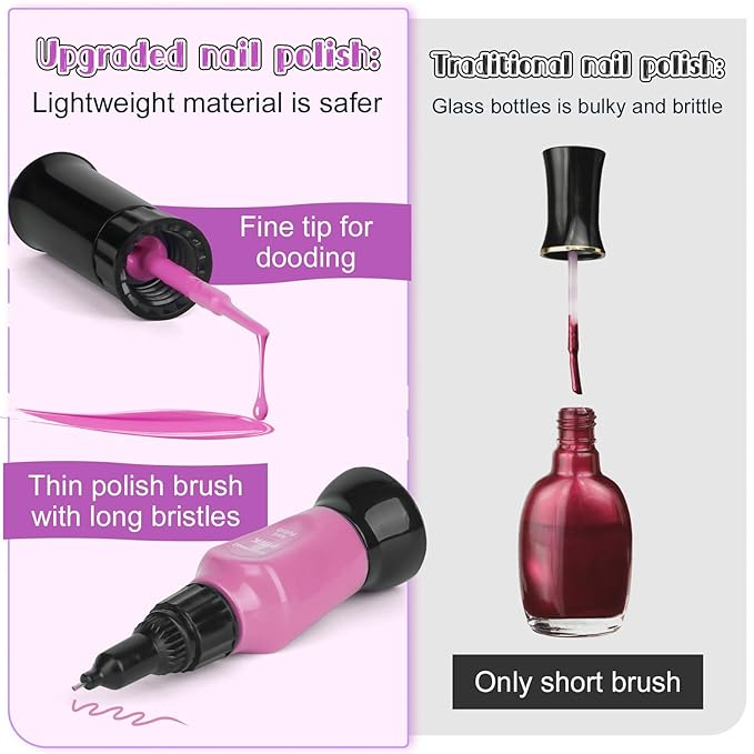 - Fun Gift Nail Kit for Girls: We all love beauty, and our nail polish set is convenient&safe to satisfy the curiosity of girls,and protect the mothers' dressers.It fascinates children as soon as they pull it out of the box and is a perfect project for friends or family. Kids can immerse themselves in it and play for hours. What could be more fun than that