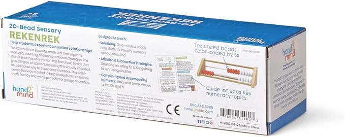 hand2mind 20 Bead Wooden Sensory Rekenrek, Abacus for Kids Math, Math Manipulatives Kindergarten, Counting Rack for Kids, Counters for Kids Math, Educational Toys for Elementary Kids (Set of 1)