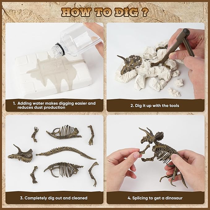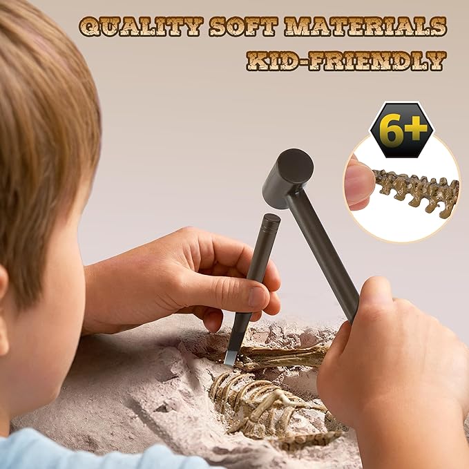- Quality Materials: Dinosaur fossil digging kit for kids are made of durable vinyl and sheetrock, enough to keep your child occupied for hours, prepare before you start by wetting the sheetrock with water ahead of time to make digging easier