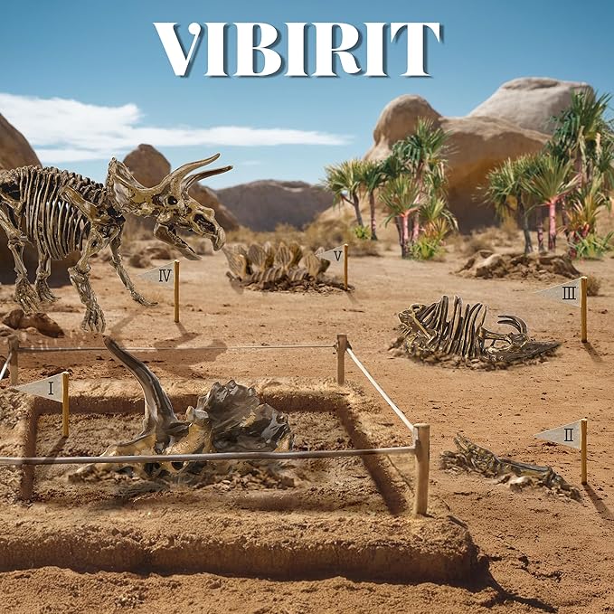 - Quality Educational Toys: VIBIRIT's Dinosaur Science Kit allows kids to take on the role of little archaeologists and learn about dinosaurs as well as prehistoric creatures while having fun by simulating the process of an archaeological dig.The detailed and realistic dinosaur skeleton model can also satisfy children's curiosity and stimulate their imagination and creative thinking as well as their interest in science