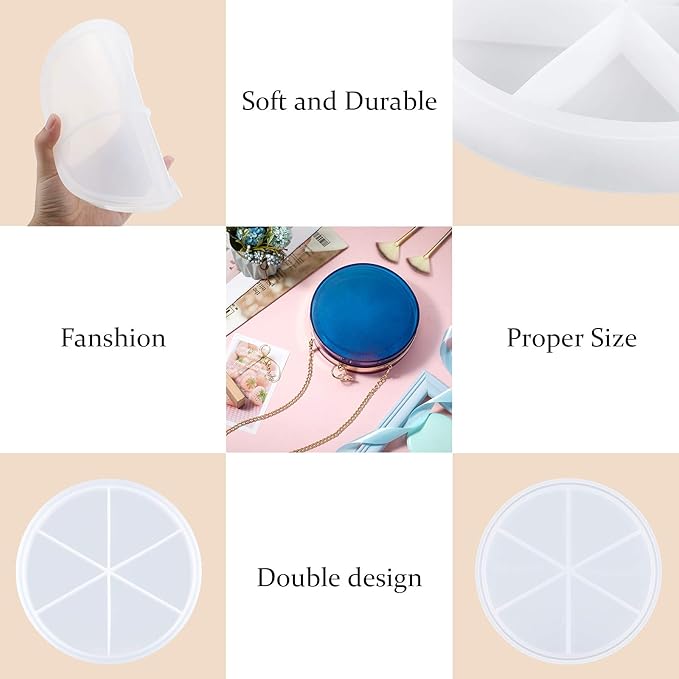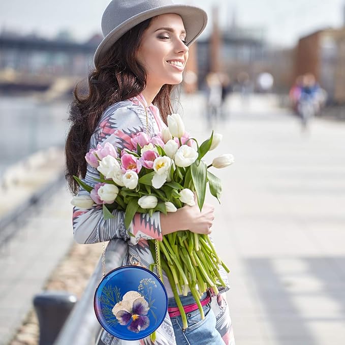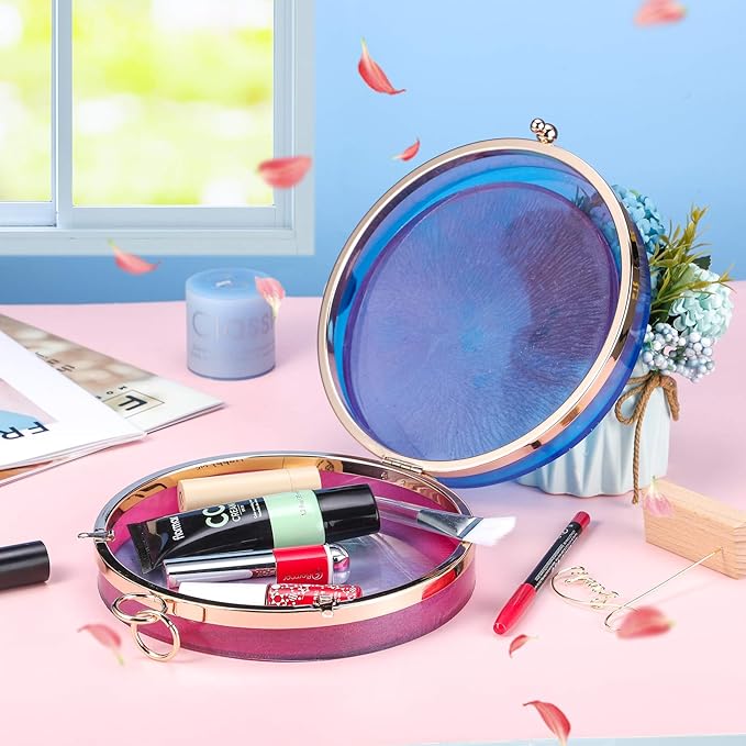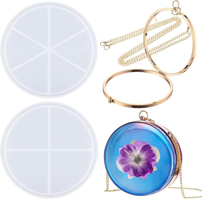 Shaker Clutch Bag Silicone Mold Set Round Bag Making Mold Dynamic Liquid Quicksand Resin Bag Mold Kit with Findings for DIY Handmade Bag Craft Supplies, 4 Pieces in Total