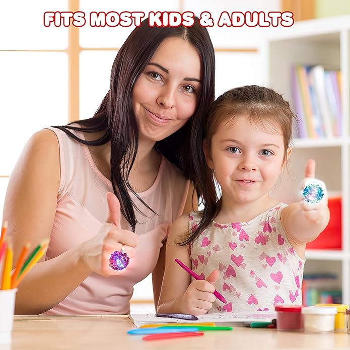 - FLASH TO FLAUNT: Jewelry toys for kids with a spectacular surprise! This pack comes with a SET OF 12 light-up bumpy rings that flash to life with red, yellow, and blue LEDs. Just press the rings to trigger the goodness and stand out from the pack in style.
