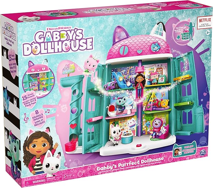 - OVER 2 FEET TALL: With its cat-inspired shape and colorful details, Gabby’s Purrfect Dollhouse looks just like the one from the show. It’s the ultimate setting for your exciting pretend play adventures