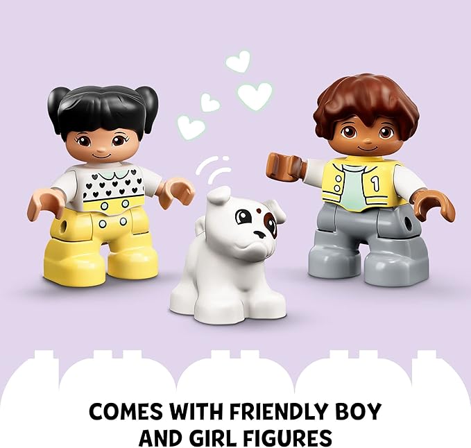 - The train set also includes a boy, girl and dog LEGO DUPLO figures to help inspire imaginative role play and education in a fun and easy way