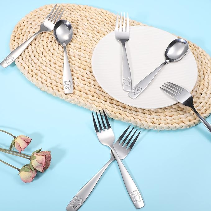 - ❤️Set of 6:Stainless Steel Toddler Utensils Set Includes 3 Toddler Spoons and 3 Toddler Forks.The Perfect Gift for New Parents, Baby Showers, Baby's 1st Birthday, Easter, Christmas or any Event.