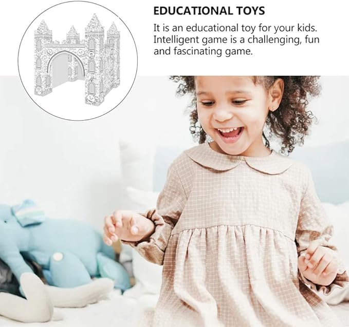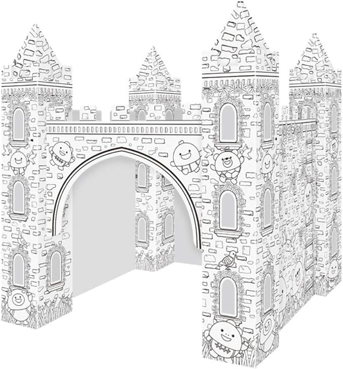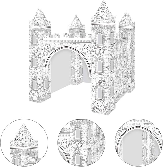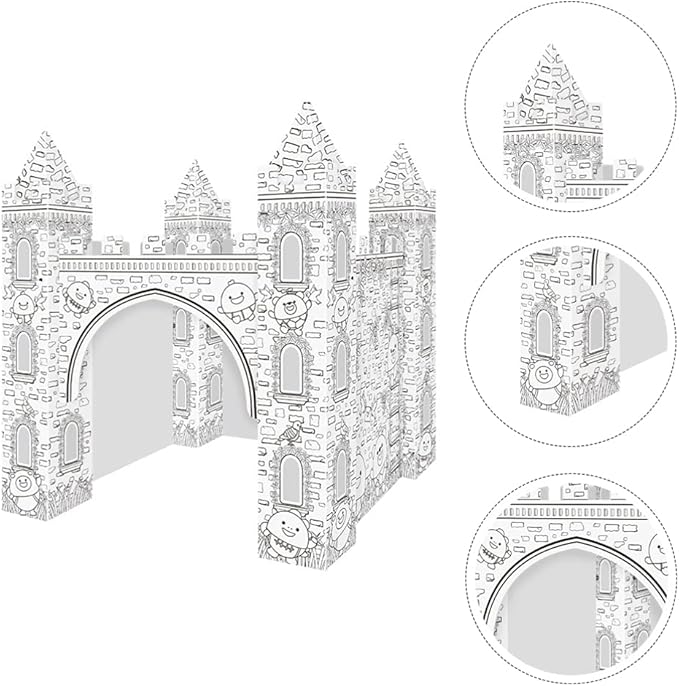 1 Set Colorizing 3D Castle Paper Fairy Tale Castle Paintable Cardboard Castle Kids Art Craft Supplies for Indoor Outdoor Fun