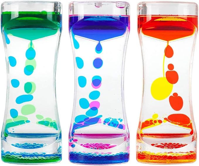 Oneshow Liquid Motion Bubbler Timer Colorful Oil Hourglass Liquid Sensory Toys Activity Fidget Toy Calm Stress Relief Desk Toys Desk Decor for Adults and Teenager Fidget Water Timers 3 Pack