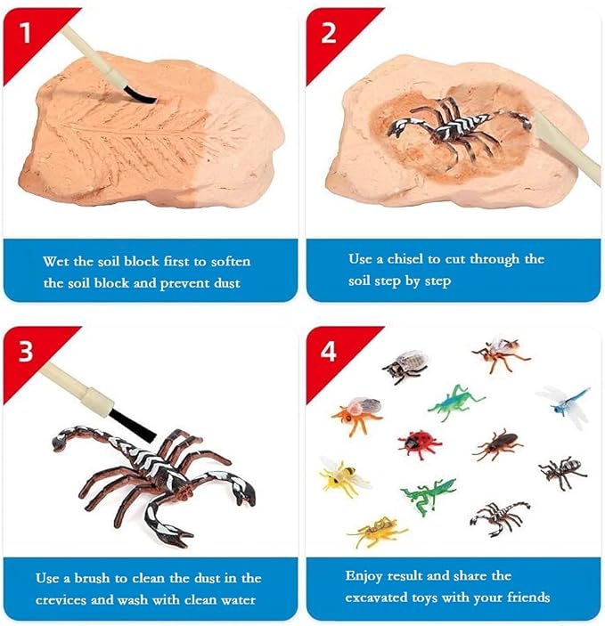 - Meaning of education: Experience the thrill of discovery like a real paleontologist excavate 12 bugs and learn about each insect from dig out toys. It’s a great start to stimulate their thinking and spark their imaginations.