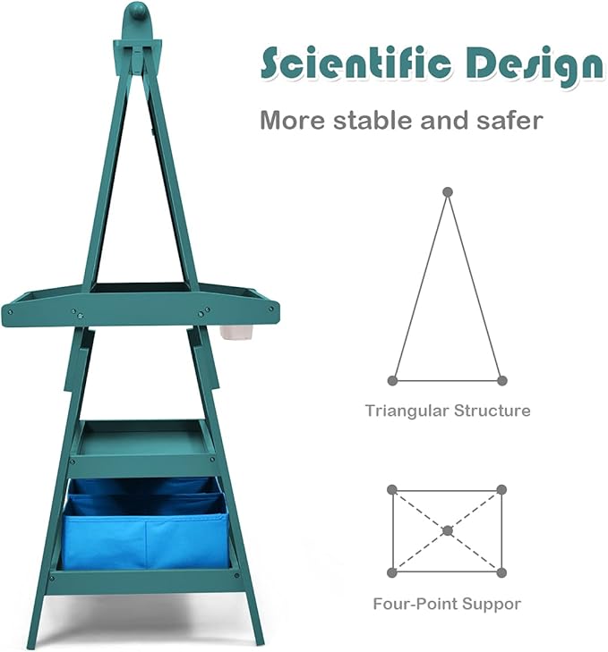 - Sturdy MDF & Round Corners: Made of premium MDF material, this wooden easel art set is sturdy for long-term use. Humanized round corners can effectively protect children from scratches. Besides, the art easel for kids is designed with triangle structure to ensure its good stability.