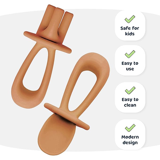Tiny Twinkle Silicone Training Utensils - Baby Spoons & Baby Forks For Self-Feeding Training - Silicone Baby Led Weaning Utensils For Toddlers And Babies 6-24 Months - Baby Feeding Supplies (Cinnamon)