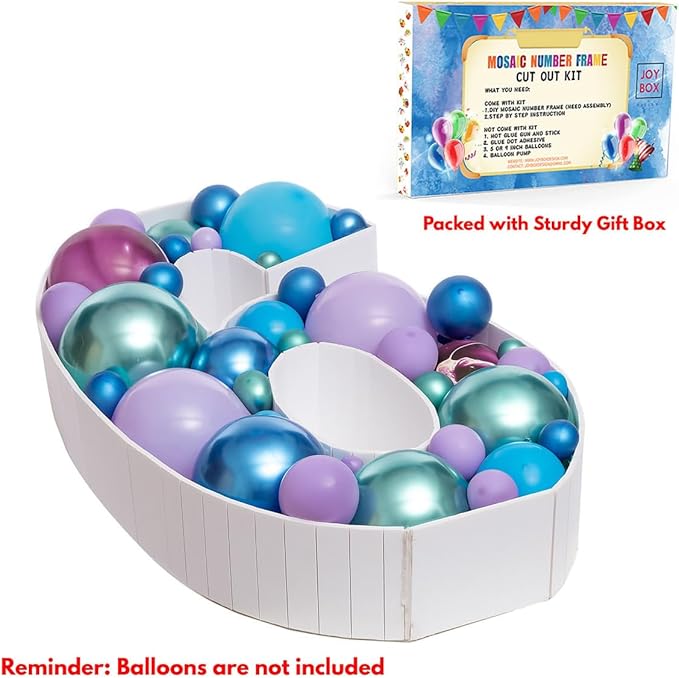 - PRE-CUT KITS FOR INSTANT GLAM: Our mosaic balloon frame is designed for quick and hassle-free assembly. Just grab your glue gun, follow the easy instructions (included), and witness the magic unfold in your celebration with a Joybox Design balloon number frame.