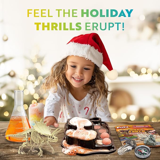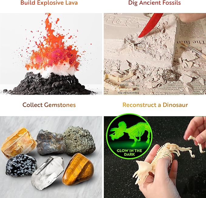 Playz Dinosaur Fossil Digging Kit for Kids, Gemstone Dig Kit & Volcano Science Kit - 46+ Fun Geographic Experiments, STEM Dinosaur Toys Excavation Kit for Kids Ages 8-12+ Years Old, Boys & Girls