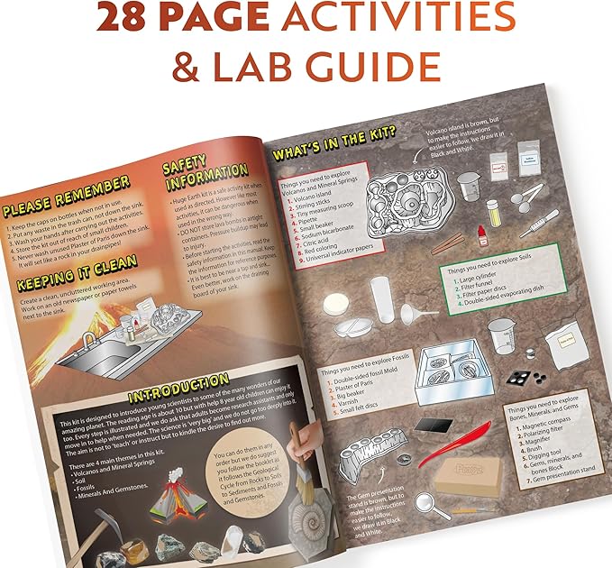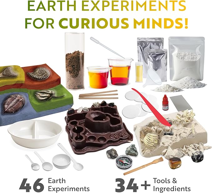 - THE ULTIMATE FOSSIL DIGGING KIT - Among the bestselling geographic science kits with 46+ fun experiments to dig out the history behind dinosaur bones, volcano eruptions, gemstones, geodes ancient rock collection, national land formations & more.