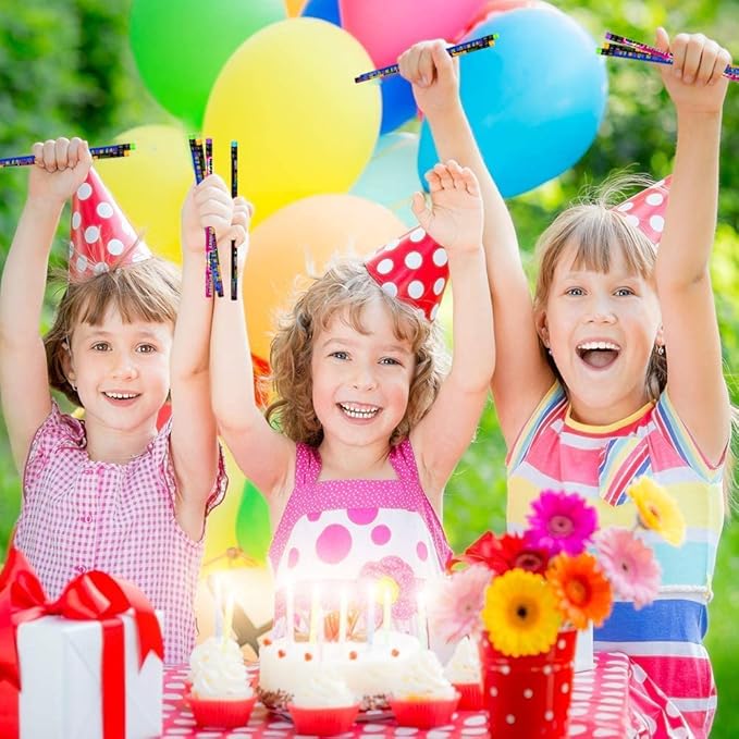 - STRIKING DESIGNS: This set comes with 24 pencils with erasers at the top and decorated with colorful birthday salutations. A great way to recognize kids’ birthdays, these "Happy Birthday" pencils are perfect for treat bags and party favors.