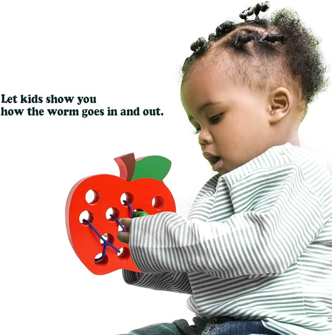 - Lacing Toys for Toddlers:Wooden lacing apple toys realistic and fun design captivates toddlers attention and encourages imaginative play It helps improve their coordination skills and it can provide enjoyable sensory experiences for children with autism.