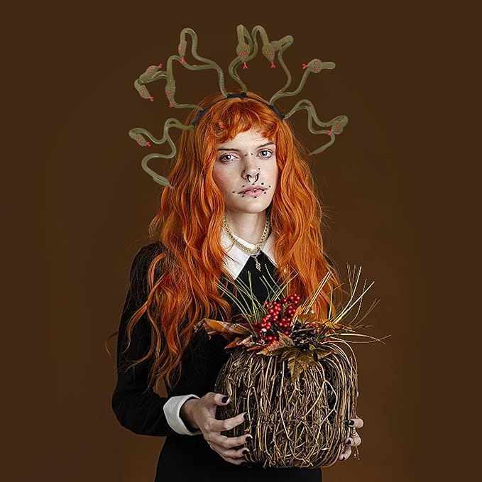 - Proper Size: our Medusas headband is approx. 23*23cm, vivid and attractive, fit for most adults. It wont tear or tighten your hair, a nice medusa halloween costume!