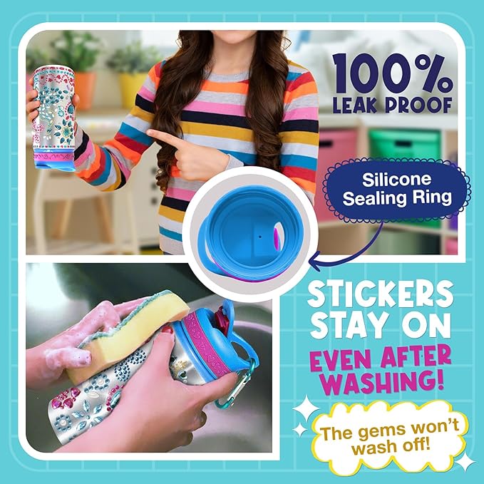 - Super fun crafts for girls! Kids decorate their own bottle with this teal kids water bottle craft kit! It comes with 4 sheets of rhinestone glitter gemstone stickers, giving kids hundreds of our sparkly glitter gem stickers to bling out their bottle! Plus we include a carabiner to hang the bottle.