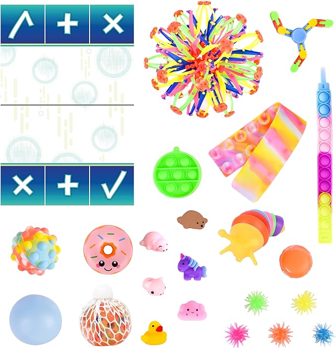 - RELAX, FOCUS, PASS TIME : Squeeze, stretch, flip, pinch, click and watch these toys to help relieve stress. Every toy has a unique feature to help with different moods and supports kids with ADHD, anxiety, sensory disorders or autism.
