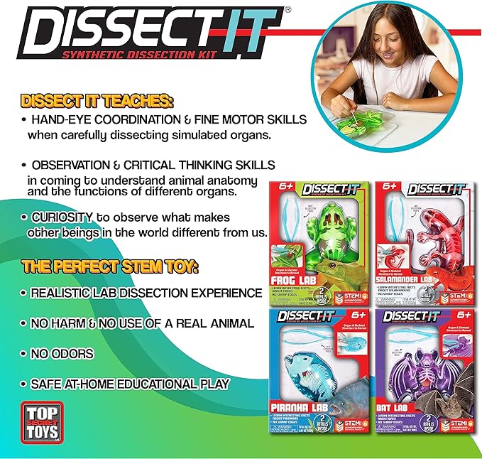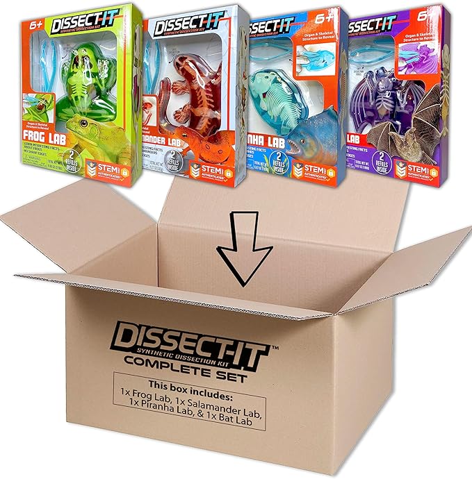 - Educational Science Kits: Take a scalpel and dissect the animal and make use of 2 refill gel packs and instruction manual of our STEM science kit to enhance your understanding of the anatomy and organ functions of a bat, frog, salamander and piranha
