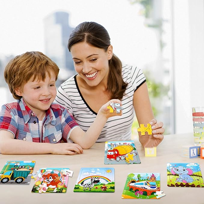 - [ VALUE TRANSPORTATION PUZZLES SET ] Studies have shown that preschool toddlers have great interest in animals transportation and bright colors. Children love simple, cute animals and cars as learning tools. The preschool puzzles can improving their hands-on ability, color recognition ability, thinking ability, imagination, ect.