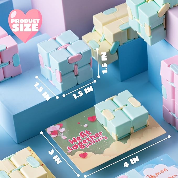- SUPER VALUE PACK. Our Valentines’ day gift for kids includes 28pcs of Infinity Magic Toys and 28 pcs valentine’s cards with cute, humorous messages that uniquely match the Infinity Fidget toys.