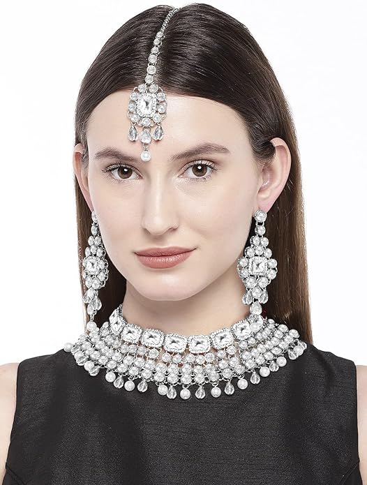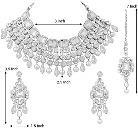 • Product Dimension :Neck piece – Length – 8 inch x Width – 2.5 inch; Earrings - Height – 3.5 inch x Width - 1.5 inch; Tikka – 7 inch