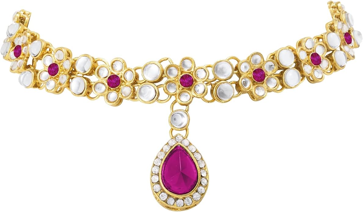 Aheli Traditional Gold Plated Kundan Beads Studded Choker Necklace Dangle Earrings & Maangtikka Set Ethnic Fashion Jewellery Gift for Women