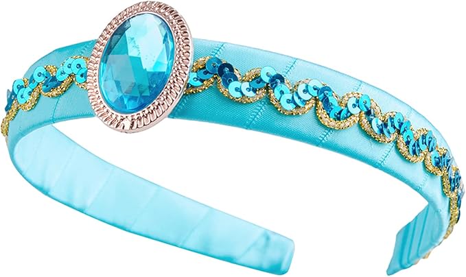 - Durable and flexible headband with shining gemstone, jewelry set with beautiful blue diamond. Perfect for dressing up as a princess.