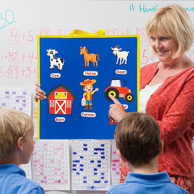 Felt Board&Story Sets and Pieces for Toddlers,Flannel Board Quiet Time Books for Children,Foldable,Double Sided,Felt Learning Board for The Classroom,Felt Toys Activities for Kids (Farm Animals)
