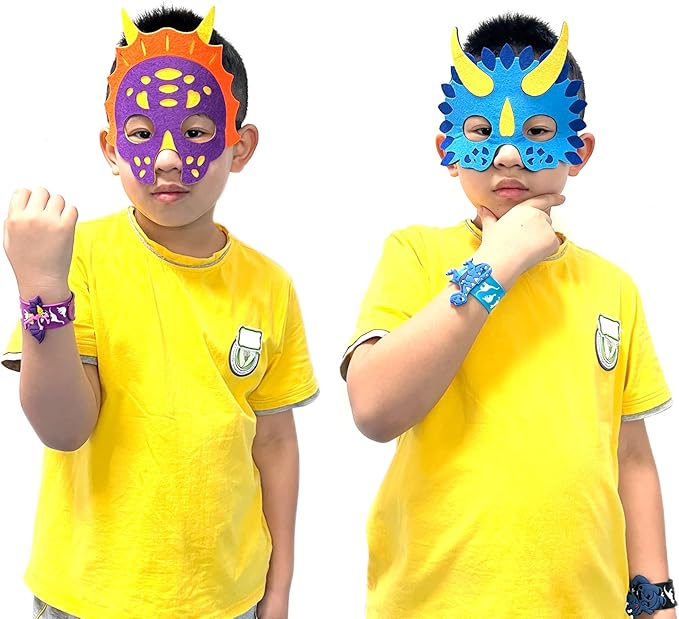 - 5/Party Favors:Use dinosaur theme slap bracelets as Valentines Day classroom exchange party favors, birthday party favors, good behavior rewards at home or school, game prizes, stocking stuffers, goodie bags, Easter favors, Halloween gifts, christmas gifts and more!If you find any problems during the purchase process, please contact us in time and we will solve them as soon as possible. If you need other party supplies, please enter our store to get more fun!