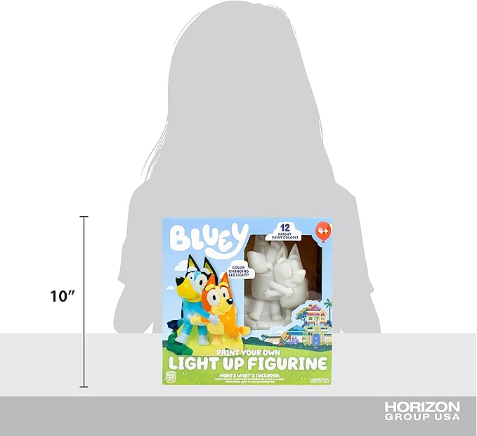 Horizon Group USA Bluey Paint Your Own Light-Up Figurine, Bingo Night Light, Toys for Kids, Playset, Party Decorations, Game, for Kids Ages 3+, Small