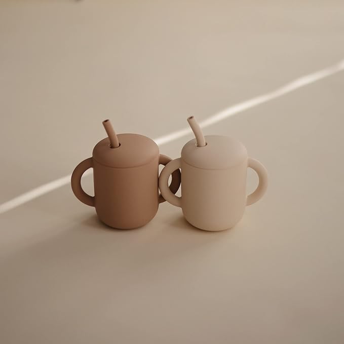 mushie 100% Silicone Training Cup & Straw for Toddlers | 6 Months+ (Natural)