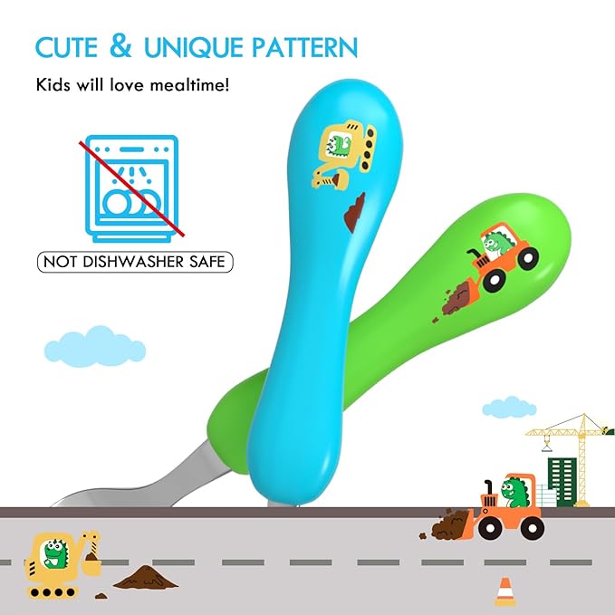 - EXCLUSIVE DESIGN FOR CHILDREN: Ergonomically designed for toddlers to grip in their small hands easily. Rounded forks and spoons without sharp edges won't hurt your little's mouth