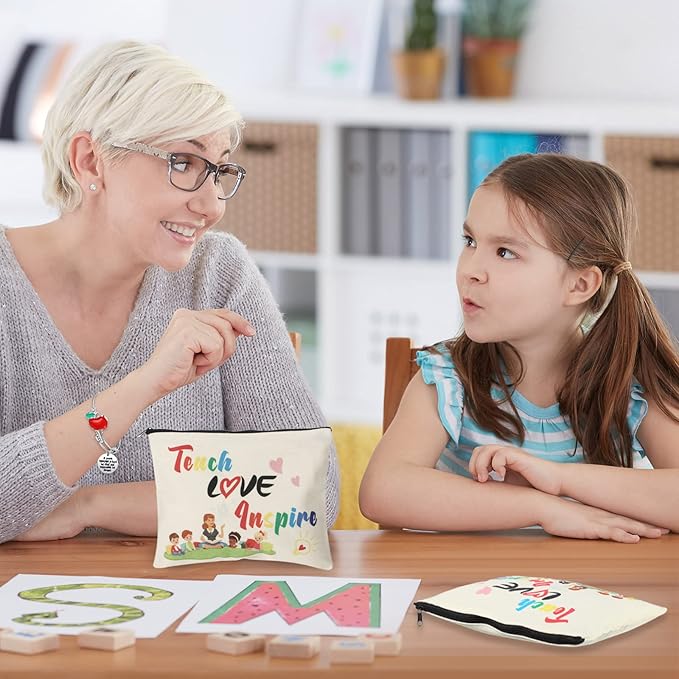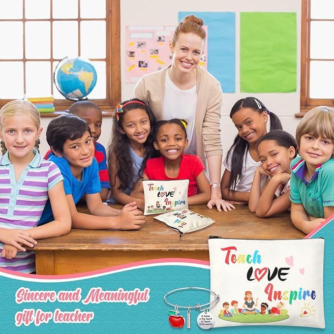- Nice combination: these teacher appreciation gifts include 4 pieces of teachers cosmetic bags and 4 pieces of teacher bracelets carved with warmhearted words, cute and thoughtful combinations can meet your gifting needs