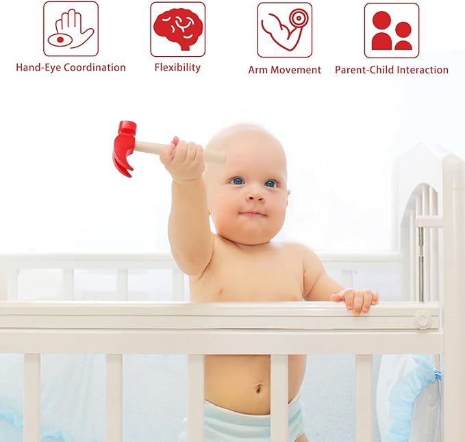 - Educational Toys: Perfectly designed for small hands to grasp and touch, these toy hammers will improve your babys grabbing ability, hand eye coordination ability, manipulation, promotes dexterity, arm movement.