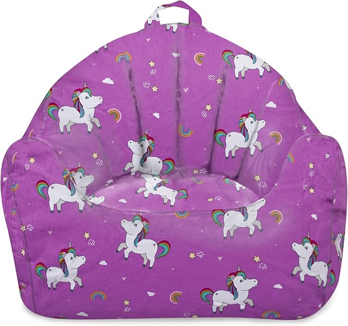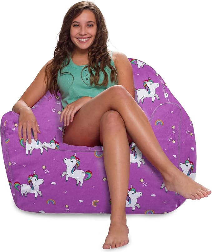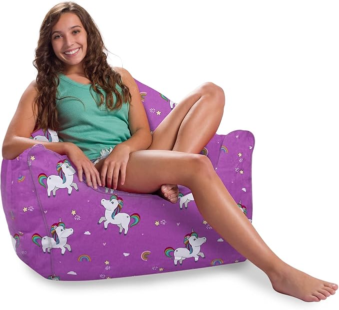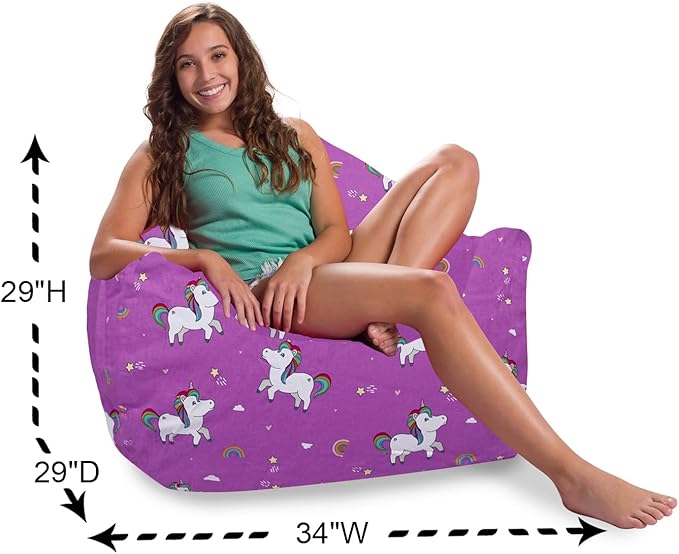 Posh Creations Bean Bag Chair Structured Seat for Kids, Teens and Adults, Comfy Bean Bag Chair for Gaming, Reading and Watching TV, Malibu Lounge Chair, Canvas - Unicorn and Rainbows on Purple