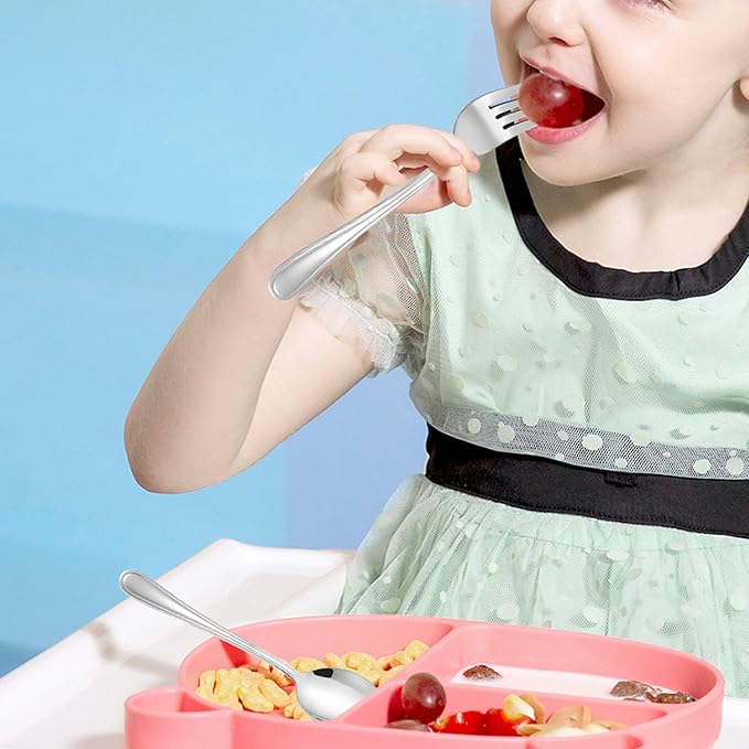 - Ergonomic design, right size ideal for little hand and mouth, kids forks are sharp enough to stab food easily but wouldn’t hurt children’s mouth, baby spoons are deep enough to hold a good amount of soup