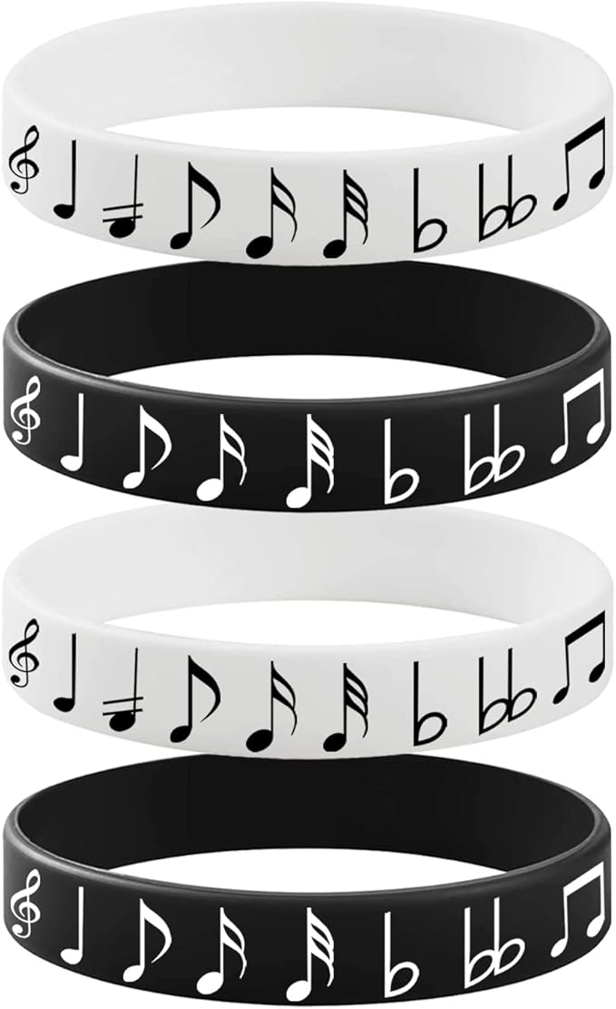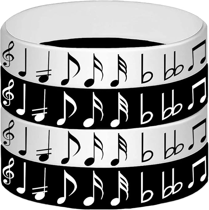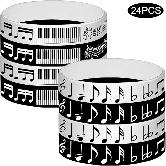 - Piano Notes Silicone Bracelets Set:24 pieces of piano notes themed rubber bracelets with 2 different colors, black and white.