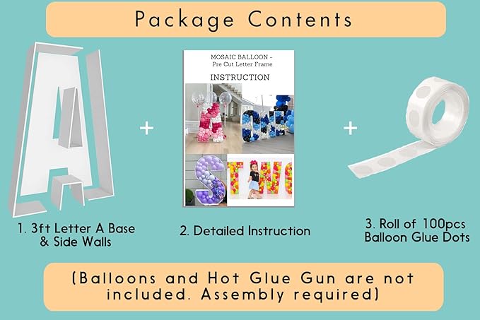 - Included Components : Ballon Glue dot, Letter A Base and Side Wall, Instruction