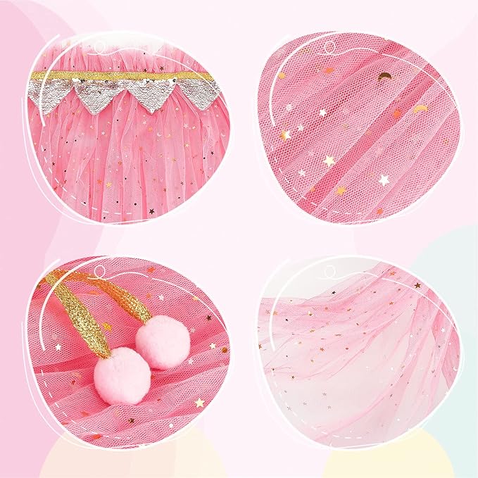 • Stylish and Sequins Cloak: Princess cape is made of soft and high quality mesh fabric, the neck of cloak with soft gold strap to prevent the shawl from falling off. Long and lightweight princess cape dotted with stars and moons that little girls love, very dazzling, makes your little girls stand out of crowd.
