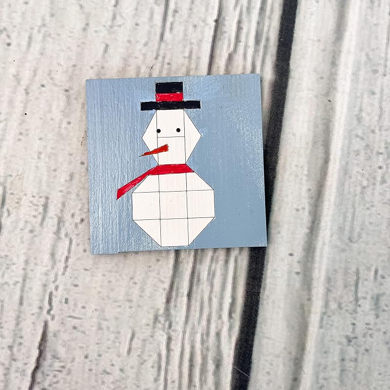 Unfinished Barn Quilt Square Wooden Sign, Country Decor Canvas Quilts Blocks (18 inches, Snowman)