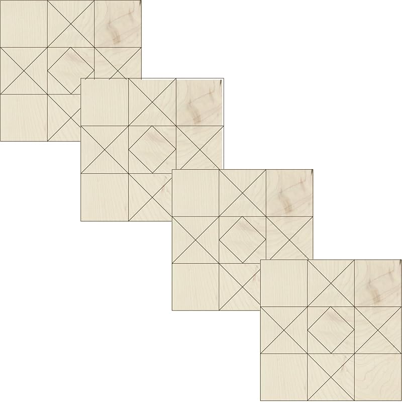 - Comes in a set of 4! Show Off Your Creativity - Beautiful maple plywood unframed farmhouse mosaic design pattern for everyday home decorating needs. Barn quilt patterns can be used for sign-making, home décor, paint parties, special occasions, door hangers, and other DIY crafts