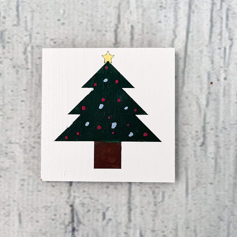 Unfinished Barn Quilt Square Wooden Sign, Country Decor Canvas Quilts Blocks (9 inches, Christmas Tree)