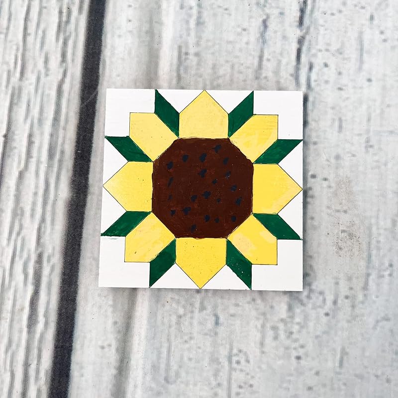 Unfinished Barn Quilt Square Wooden Sign, Country Decor Canvas Quilts Blocks (6 inches, Sunflower)