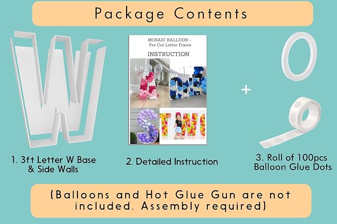 - FAST and EASY ASSEMBLY - Decorate your party like an event balloon artist! Our 3ft mosaic balloon letters are pre-cut to the perfect measurements, saving you the hassle of printing, measuring, and cutting templates yourself!