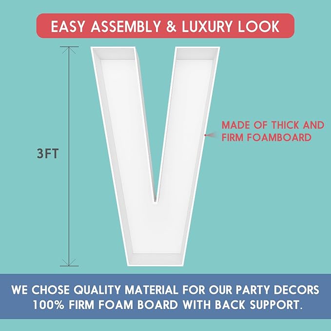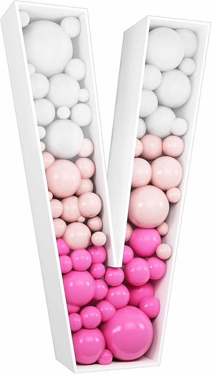 3FT Tall Mosaic Balloon Frame Letters Big Marquee Light Up Letters DIY Kit for Birthday Party Wedding Backdrop Decor Letter V Pre-Cut Foam Board